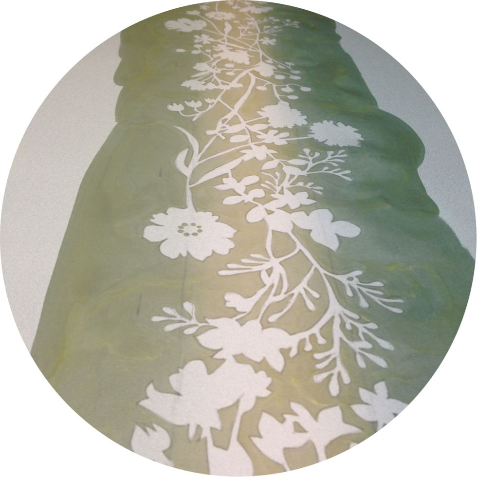 勤めていた時帯揚に下絵なしのフリーハンドで柄を描く仕事があってその時になんとな〜く描いた柄を師匠が気に入ってくれていつの間にかどんどん進化を遂げ、
